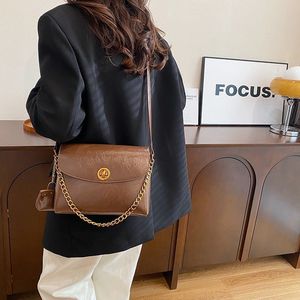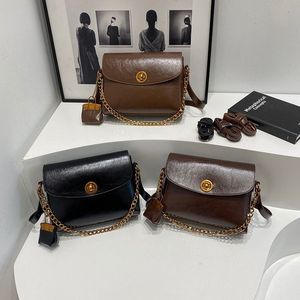 高級感のあるオイルワックスレザー、高級レトロチェーン、新作ワンショルダーファッション斜め掛けバッグ、お出かけ用2本のショルダーストラップ