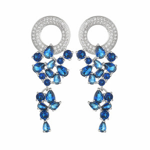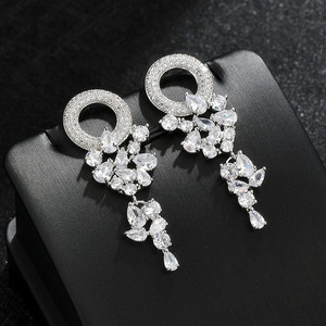 跨境新款轻奢微镶锆石水滴流苏耳环时尚重工显白长款几何耳坠女
