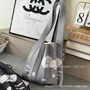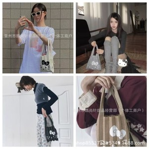 韓国 JOSEPH&STACEY サンリオ ハローキティ ジョイント プリーツ かわいい ニット ハンドバッグ 卸売