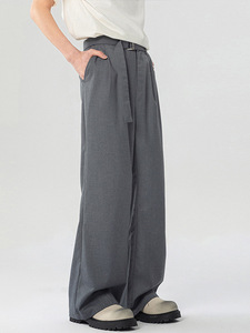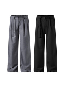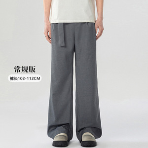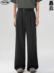 LKTM メンズ夏用軽量プリーツドレープパンツ、男性と女性用、ハンサムな取り外し可能なベルト付きのエクストラロングカジュアルパンツ