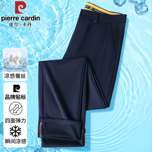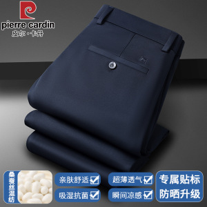 ピエールカルダンマルベリーシルクメンズパンツ夏薄い中年男性カジュアルロングパンツストレートお父さんストレッチパンツ