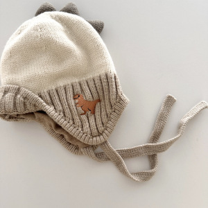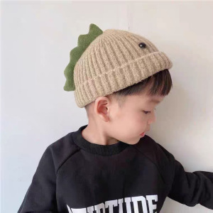 新しい子供用帽子秋と冬プラスベルベットかわいい恐竜耳保護帽子男性と女性のためのベビーニットプルオーバー帽子暖かい韓国語版