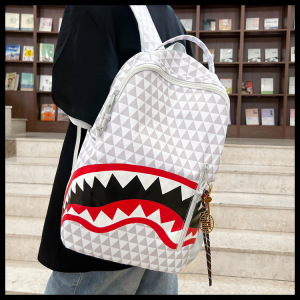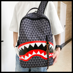 メンズニッチファッションチェック柄サメバッグバックパック学生スクールバッグ大容量ストリートバックパックトラベルバッグ卸売