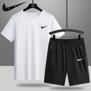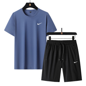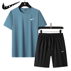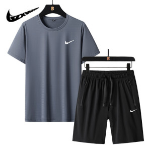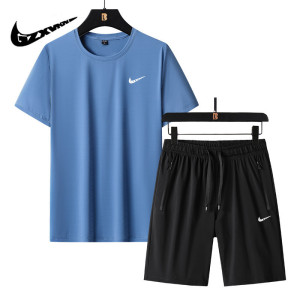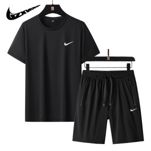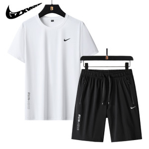 2025 新しい夏のアイスシルクスポーツスーツメンズ薄型通気性ラウンドネック半袖トップルーズショーツ 2 点セット