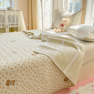韓国純綿ベッドカバー3点セット、柔らかく肌に優しい、厚手の綿シーツ、オールシーズン万能、畳カバー、滑り止め
