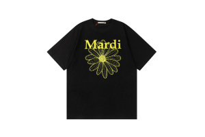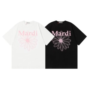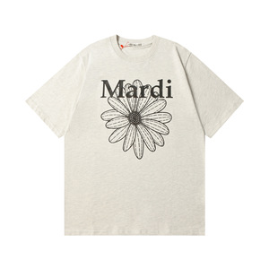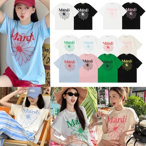 マルディ 小さなデイジー柄 ラウンドネック 半袖 レディースTシャツ ゆったり 着痩せ効果 レタープリント 綿100% トップス プリント半袖Tシャツ