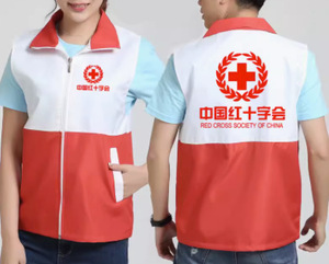 エクスプレスベストブルースカイレスキュー赤十字作業服卸売カスタムプリントロゴマルチポケットベスト広告シャツ