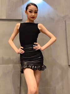 ラテンダンスウェア女の子 2025 夏の新ノースリーブトップヒップカバーハーフスカートハイエンドスプリットトレーニングスーツ