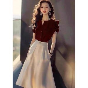2025年夏の新しいホットスタイルの女性用イブニングドレス用スカートスーツ、軽い豪華さと強力なオールドマネースタイルの婦人服