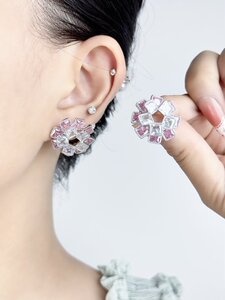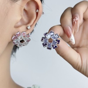 新しいヨーロッパとアメリカンスタイルの誇張されたイヤリング、カラーダイヤモンド、多層正方形、絶妙でシンプル、多用途のフラワーイヤリング、イヤリング卸売