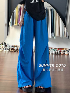ブルー速乾性オーバーオール女性の夏薄い 2025 新しいルーズカジュアルニッチスタイルドレープパラシュートワイドレッグパンツ