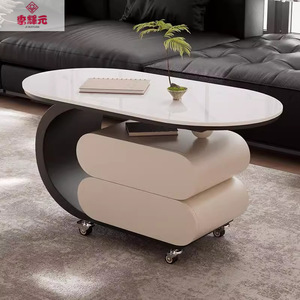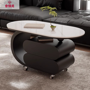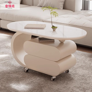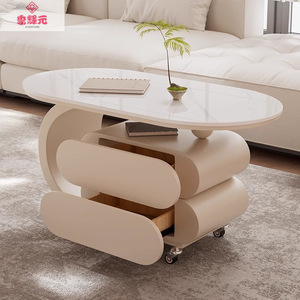 法式可移动茶几客厅家用轻奢高级感设计师极简椭圆形简约推车茶几