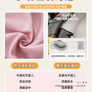 【ブラックシルク完全遮光・防水】カーテン幅150*150cm高さ【伸縮ロッド長さ100-190】【適用サポート距離100-175】