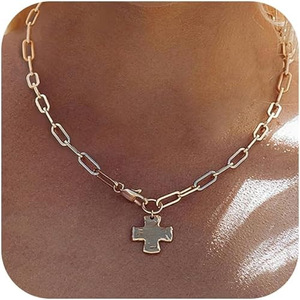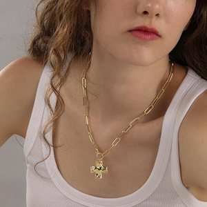ヨーロッパとアメリカのハンマーパターンクロスペンダントネックレスニッチライト高級デザインジュエリークロスボーダー鎖骨チェーン