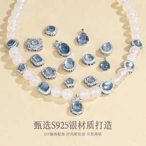 S925 スターリングシルバー天然アクアマリンクリスタルビーズペンダントペンダント diy ビーズルースビーズジュエリーアクセサリー卸売