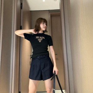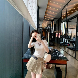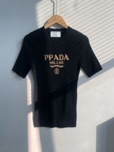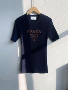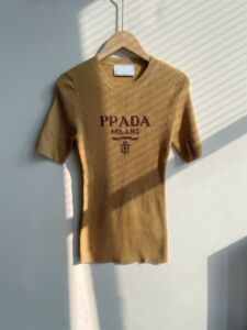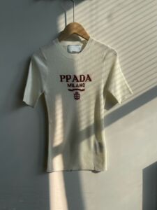 新規上場PファミリーNanyouハイバージョン25年夏ウール胸文字ロゴジャカードスリムラウンドネックTシャツ女性用