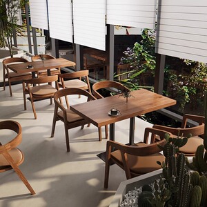 越境輸出向けのネット人気カフェテーブルと椅子のセット、レトロな無垢材と籐編みのレストランテーブルと椅子、ネット人気のミルクティーショップのレジャーデザイン