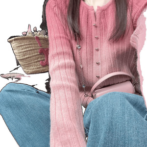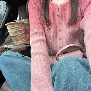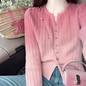 粉色高级感针织毛衣女初春季2025新款韩系独特别致设计感上衣