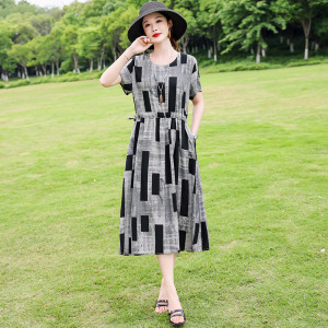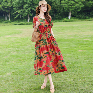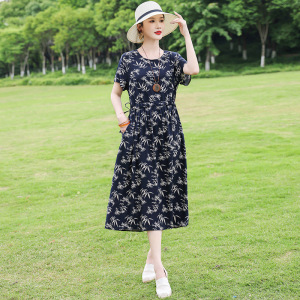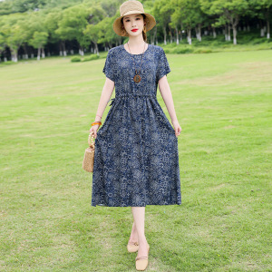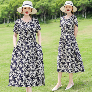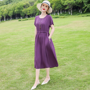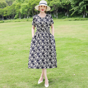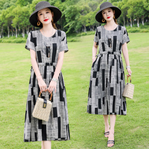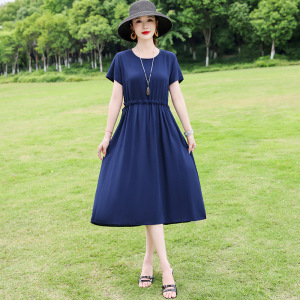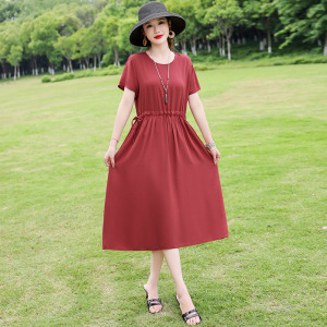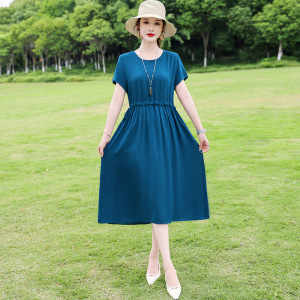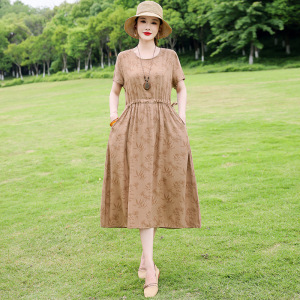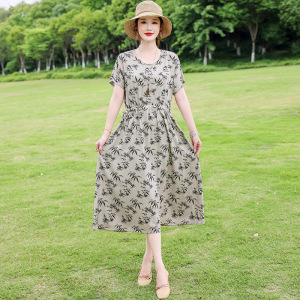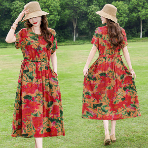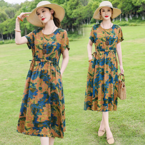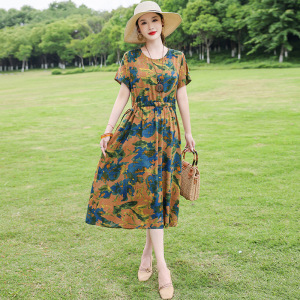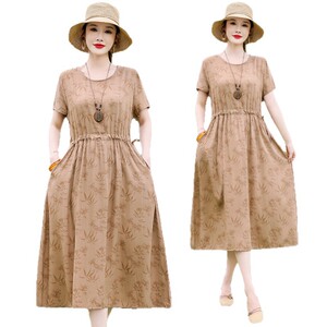 中高年向けコットンシルクワンピース 2025年新作半袖セレブ気質ゆったりお腹カバー着痩せママ大きいサイズ婦人服