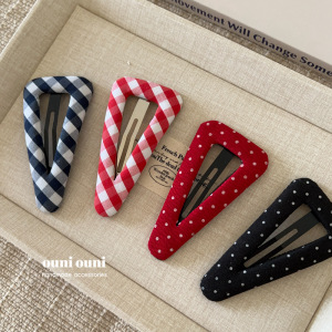 白いベリー!水玉チェック柄ヘアピン三角BBクリップ前髪クリップ韓国風バーティカルクリップヘアアクセサリー新しいスタイル