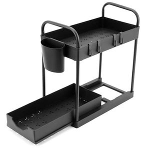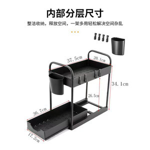 跨境家用调料架扶手双层可抽拉式厨房置物架带挂钩桌面收纳架子