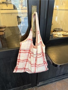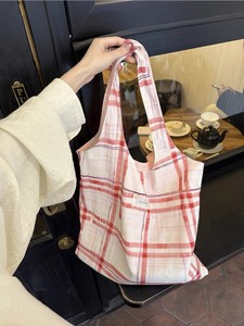 2025 新しい手描きチェック柄オリジナルレースラベルデザインチェック柄大容量キャンバスバッグショルダーバッグ