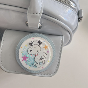 マグネットブルーチェック柄スヌーピーラベルイラストシェル+流砂スヌーピースタンド