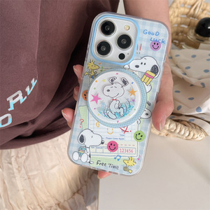 漫画スヌーピーラベル磁気ホルダー iPhone16 Apple 15ProMax/14/13 携帯電話ケース女性用