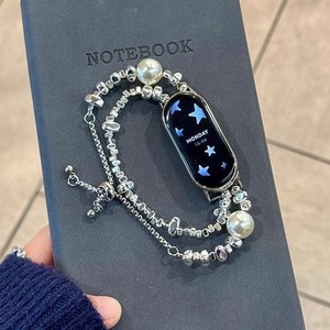 适用小米手环10表带9新款双排碎银子珍珠8腕带高级感时尚女款夏季