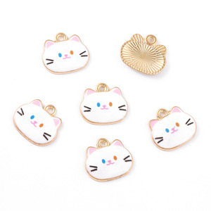かわいいプリント小さな猫ヘッド合金オイルドリップイヤリングブレスレットペンダントキーホルダーペンダント携帯電話アクセサリー diy アクセサリー