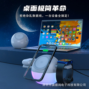 Apple ワイヤレス充電に適したクロスボーダー多機能オールインワンワイヤレス充電器デスクトップ充電タッチ回転スタンド