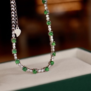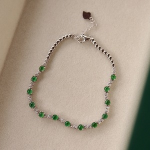 天然翡翠ブレスレット S925 スターリングシルバーメッキ 18k ホワイトゴールドシンプルで多用途なジュエリー工場卸売供給