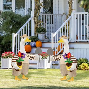 ガーデナーのポーチ ガチョウセット 屋外の芝生の庭のパティオの装飾用の豪華な植木鉢とシャベル付き ガチョウの布