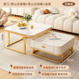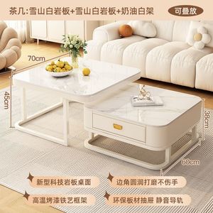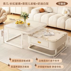 クリームスタイルのコーヒーテーブル、小さなアパートのリビングルームテーブル、シンプルで軽い高級感、モダンなロックプレート、インターネットセレブのガラス製スクエアコーヒーテーブル