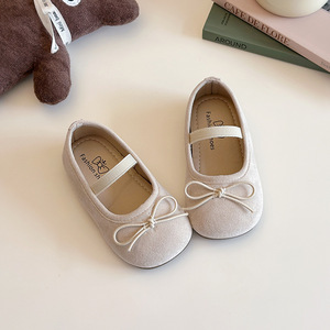 女の子の小さな革靴 2025 春と夏の新しいスタイルのリボンガールプリンセスシューズソフトソールビーニーシューズ布靴ベビーシューズ