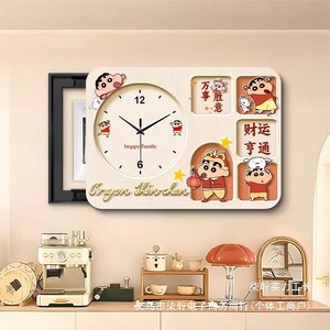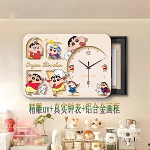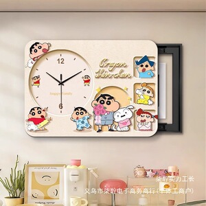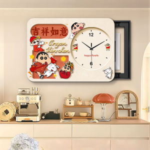 クレヨンしんちゃん 電気メーターボックス装飾画 時計付き パンチングなし 配電ボックスをブロック 強力な電気ボックスカバー 時計吊り下げ絵画