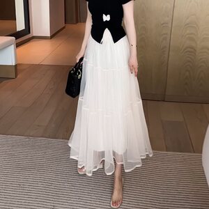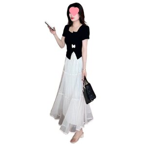 女性のための西洋スタイルのハイウエストプリーツメッシュスカートスーツ夏の新しいデザインスリット半袖トップツーピースセット