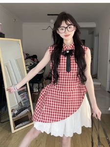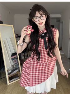 カレッジスタイルの赤いチェック柄のケーキふわふわドレス女の子の誕生日スカート甘い気質ウエスト痩身ベストドレス