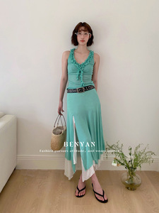 BENYAN ベニヤン 2025 夏新作 フレンチスタイル イヤリング 不規則デザイン スリットスカートスーツ 82117