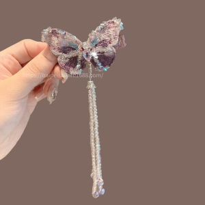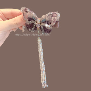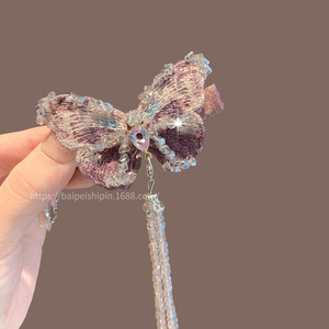 新しいハイエンドの軽い高級蝶タッセルヘアピン女性のアンティークヘアアクセサリークリスタルヘアピンヘアピンサイドクリップ頭飾り