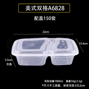 長方形二段6828使い捨て弁当箱 電子レンジ対応仕切り弁当箱 ファーストフードテイクアウト用包装箱 弁当