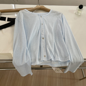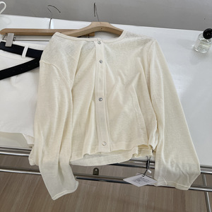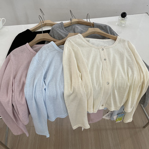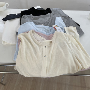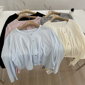 テンセルリネンシングルブレスト長袖日焼け止めカーディガンブラウスルーズショートトップジャケット女性の薄い夏