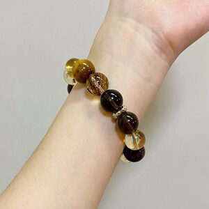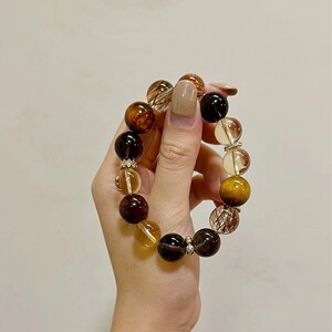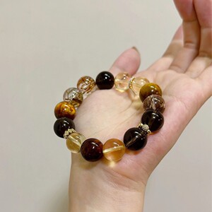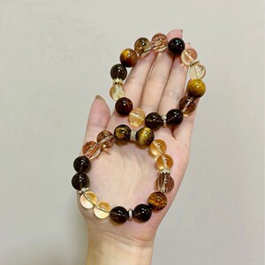 Jinba Da 総合アップグレード版サンセットゴールデンクリスタルタイガーアイストーンティークリスタルブラックゴールドスーパーセブンブレスレット