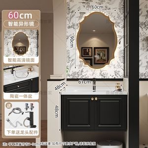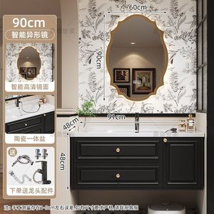 フレンチレトロブラックアンティークスタイルバスルームキャビネット多層無垢材アメリカン洗面台セラミック一体型洗面器小型アパートメントコンビネーション