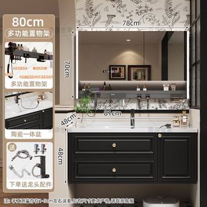 Zz 収納ラック ミラーキャビネット [ヘアドライヤーラック丨歯ブラシホルダー]-81cm/一体型セラミック丨ブラック/ホワイト/ゴールド蛇口の3つからお選びください