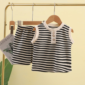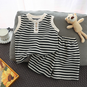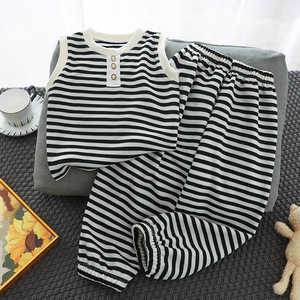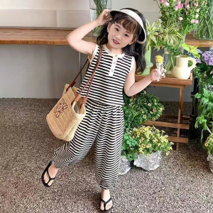 2025 新しいノースリーブストライプガールズスーツ夏のファッショナブルなベスト Tシャツ韓国スタイル子供の 3 点セット