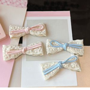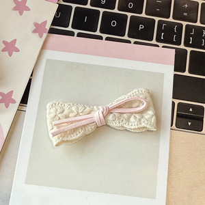 女性用の甘いレースのストラップ付きリボンヘアピン、小さくて新鮮で多用途な前髪サイドクリップ、キュートで柔らかいかわいい帽子