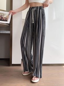 ハイエンドプリントハイウエスト薄い綿シルクワイドレッグパンツ女性の夏のドレープストレートルーズウエスト人工綿カジュアルパンツ