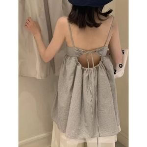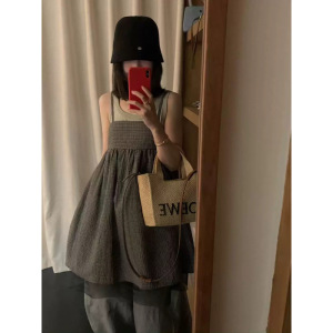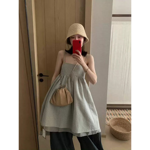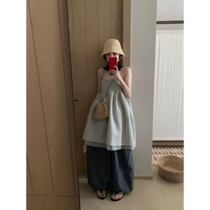韓国のシンプルな気質、高級休暇スタイルのストラップサスペンダースカート、カジュアルで多用途なゆったりとした痩身ドレス