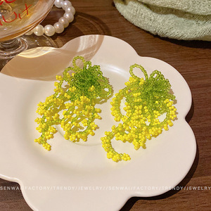 女性用の手作りビーズの雰囲気のあるフラワーイヤリング、海辺のリゾートスタイルのドーパミンタッセルイヤリング、甘いフォレストスタイルのイヤリング